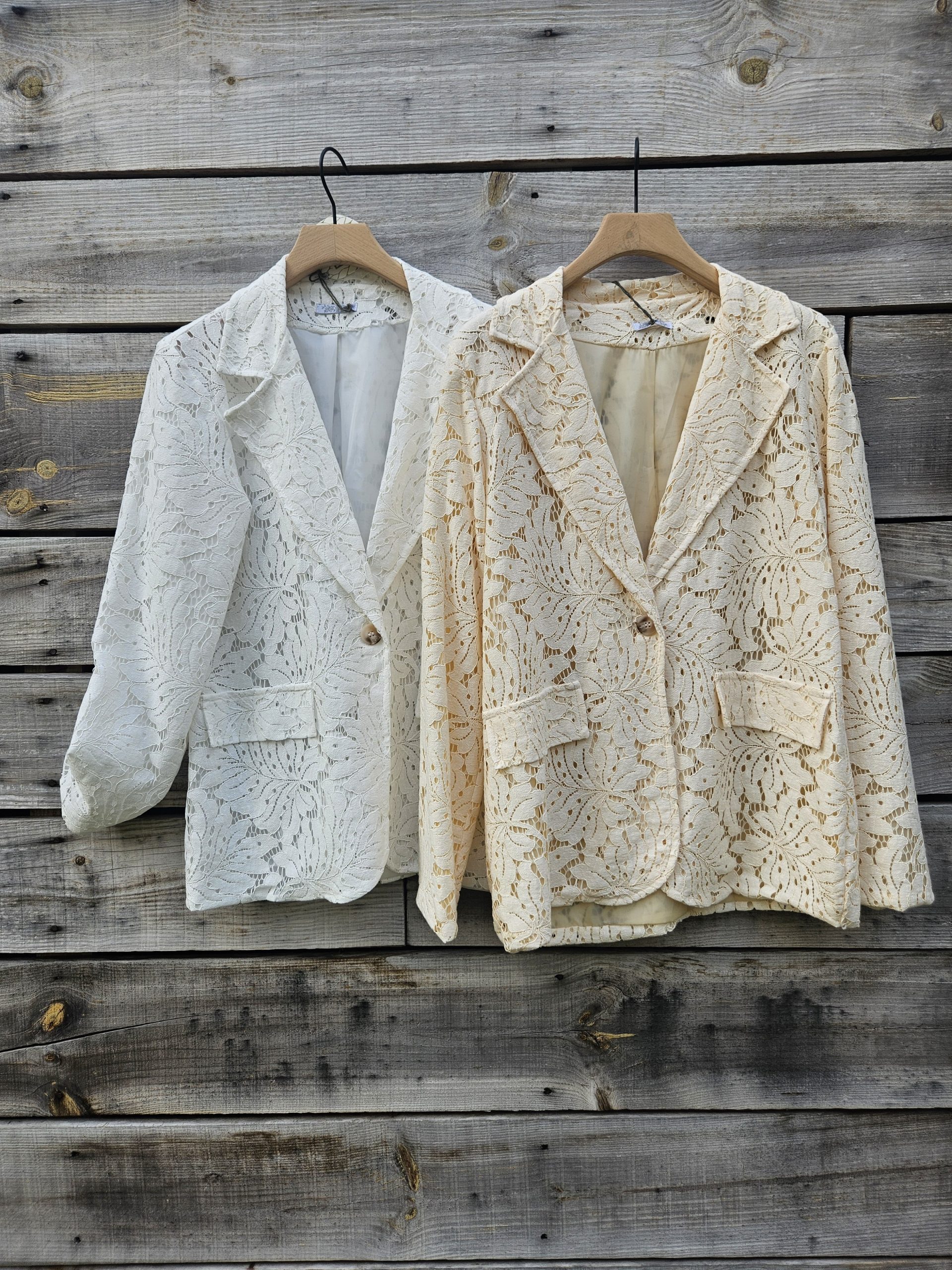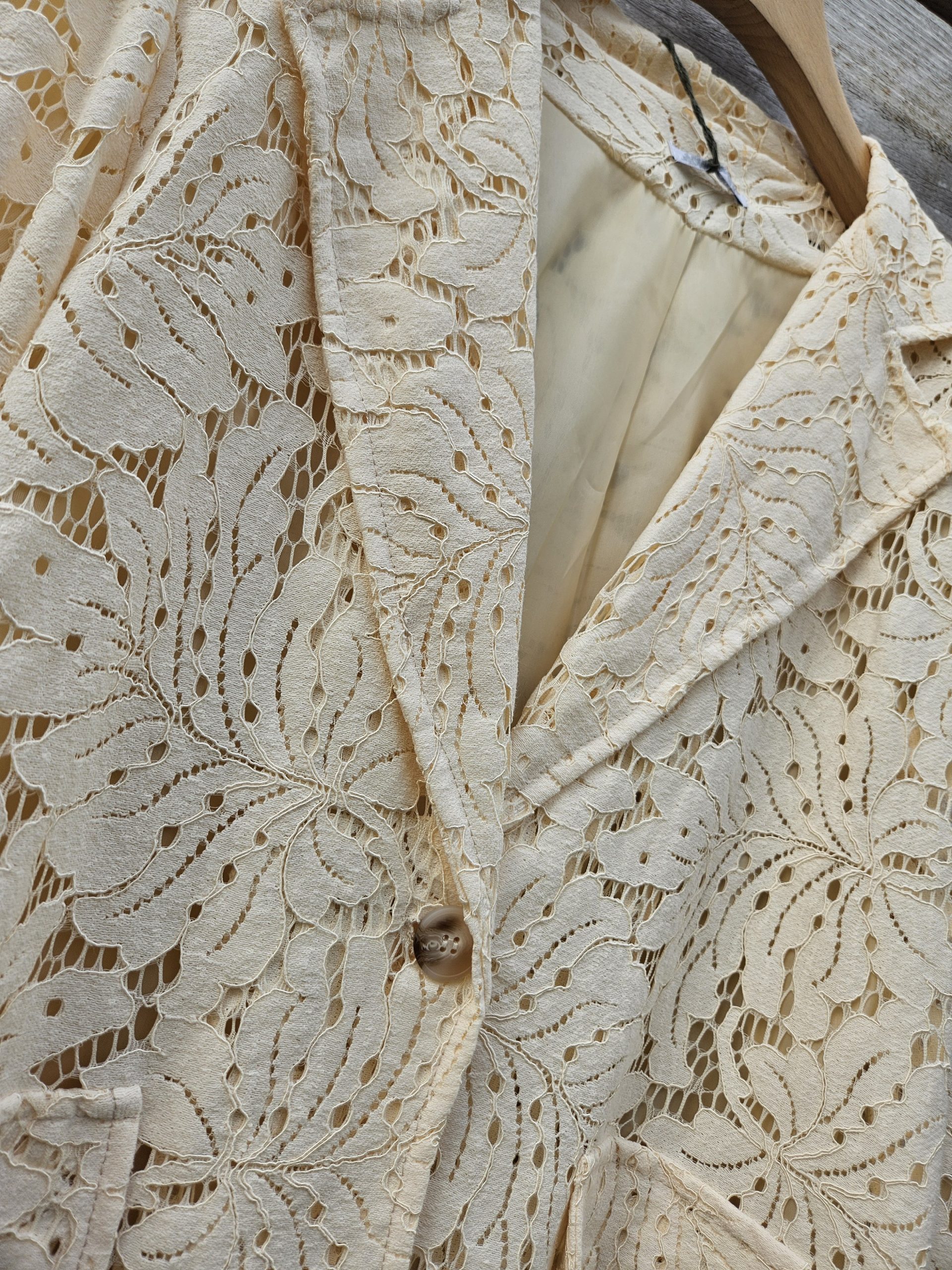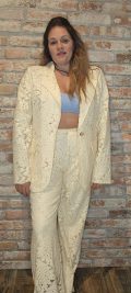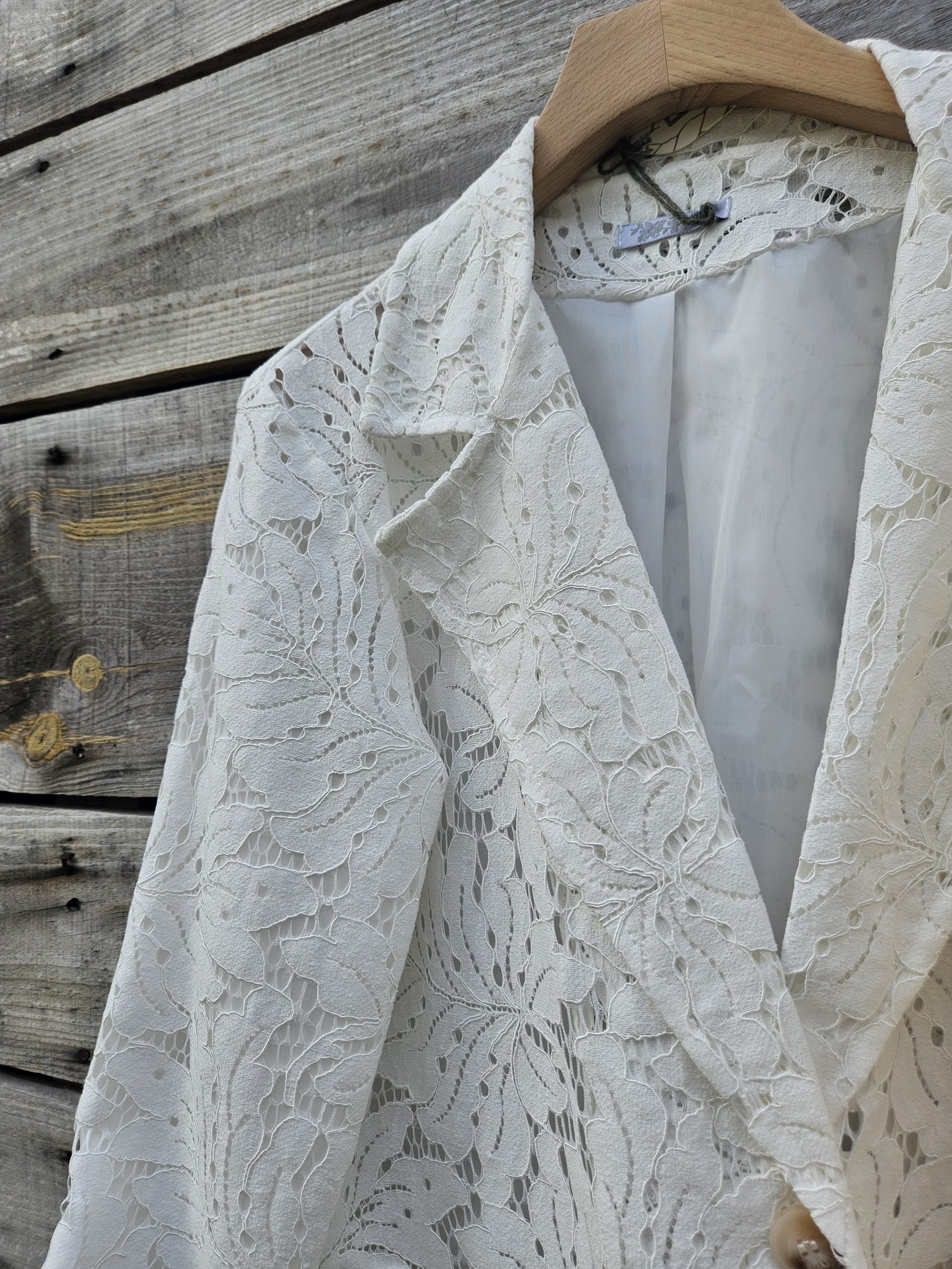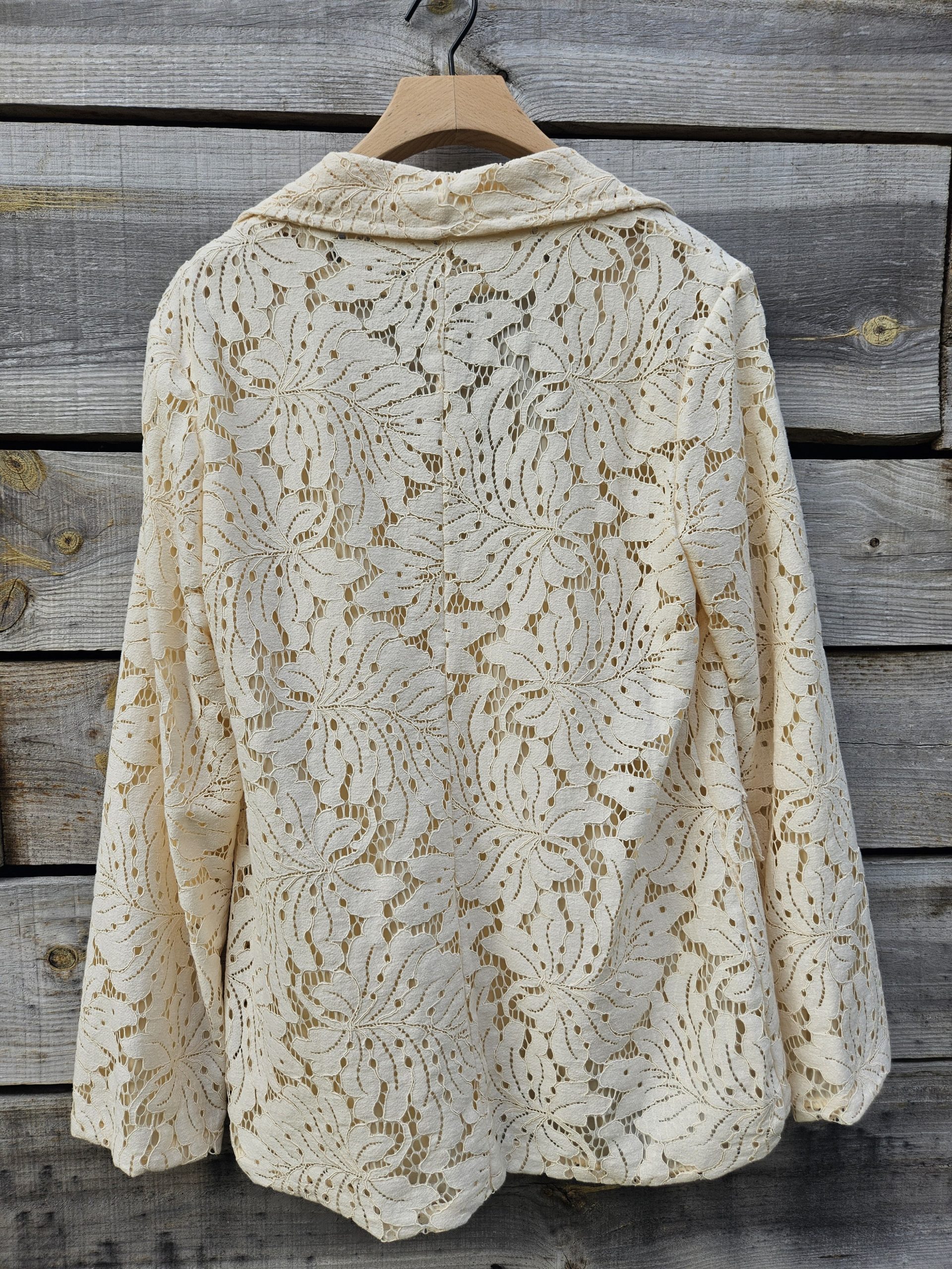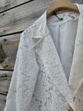 Élégant et délicatement travaillé, ce blazer en dentelle incarne à merveille le charme intemporel mêlé à une touche de modernité. Sa matière finement ajourée révèle subtilement la silhouette tout en restant sophistiquée, idéale pour sublimer aussi bien une tenue de jour qu’un look de soirée.