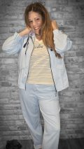 le blouson zippé toujours tendance décliné ici sur un tissu fluide et léger en prince de galle