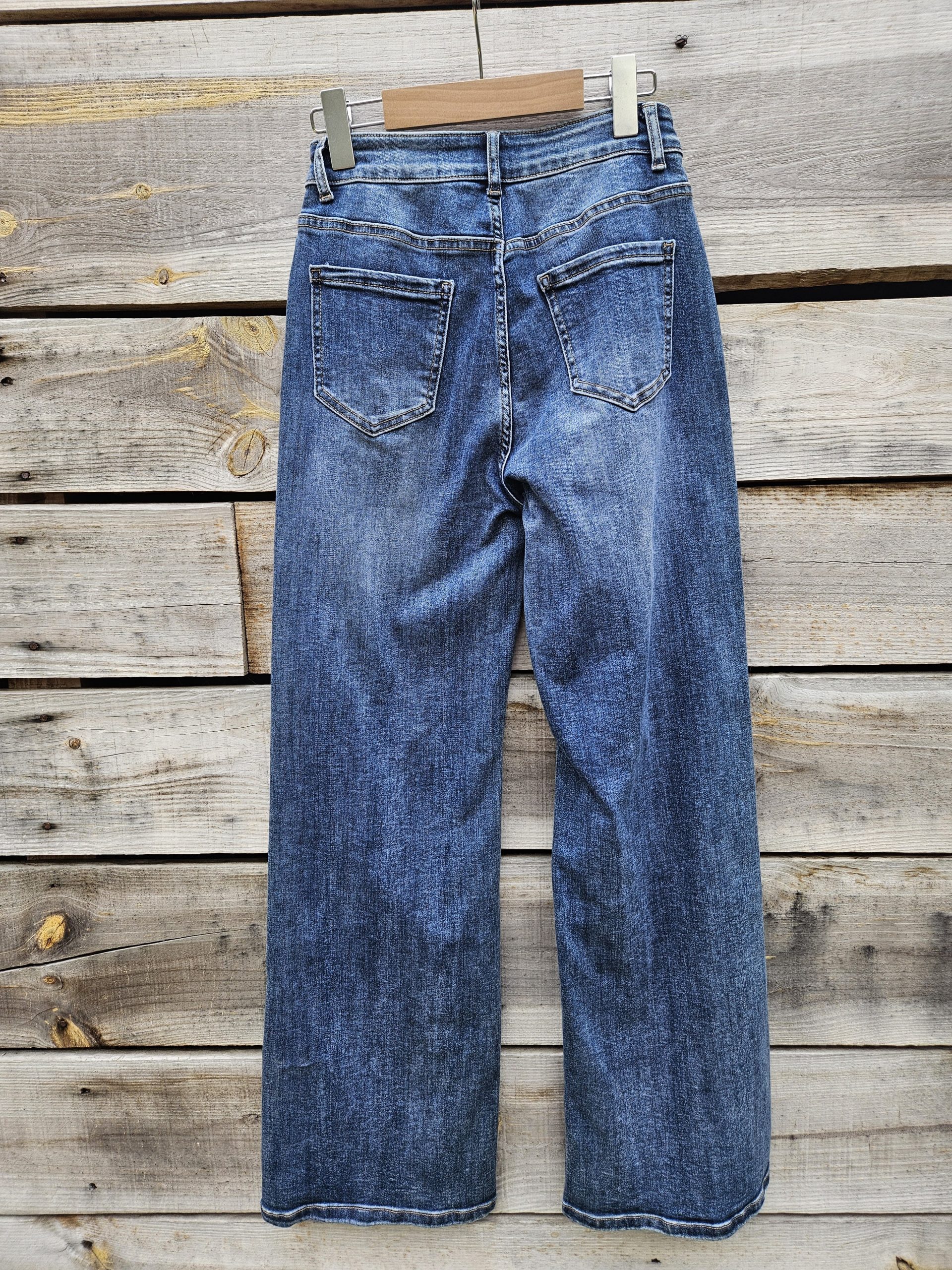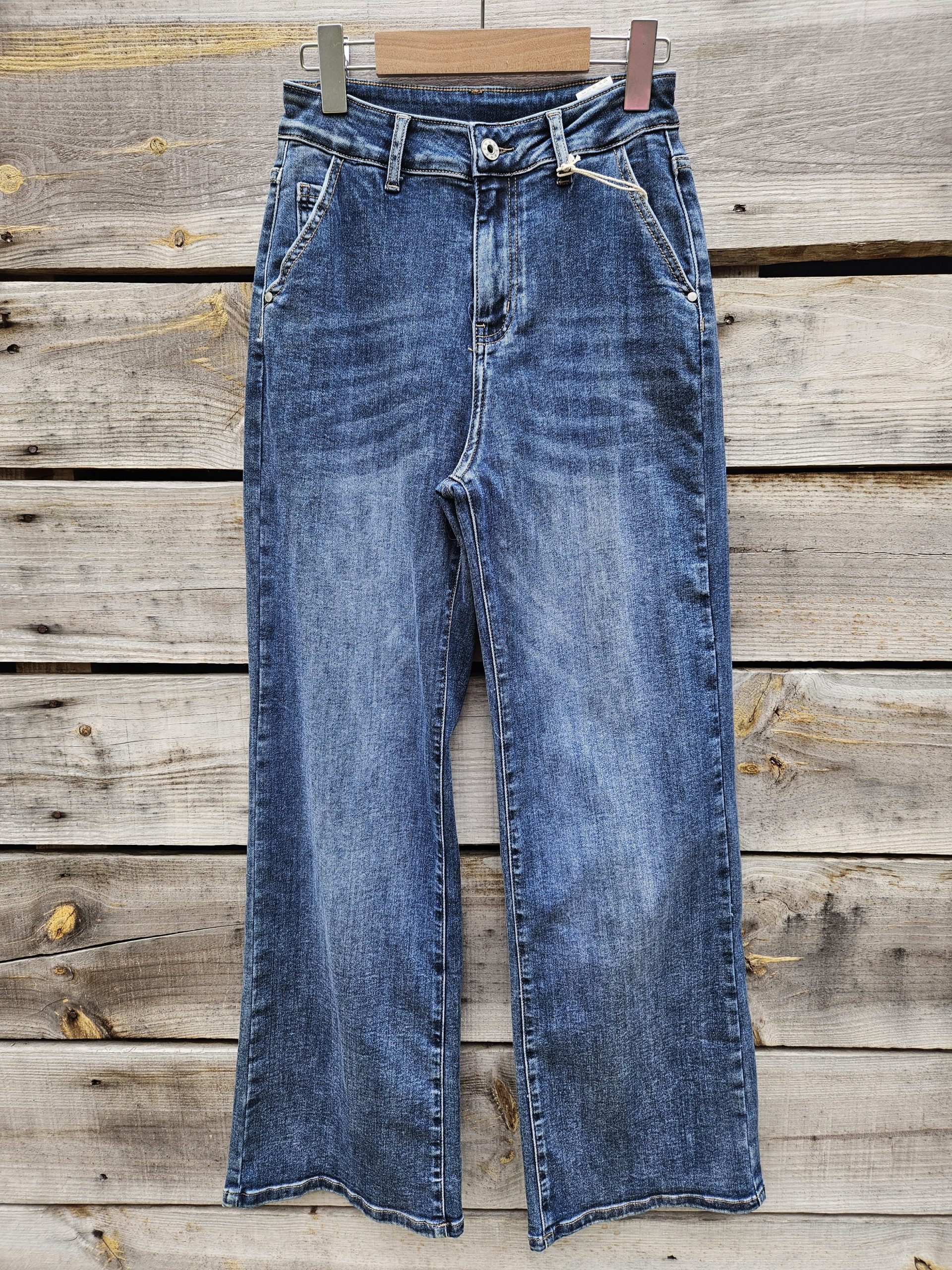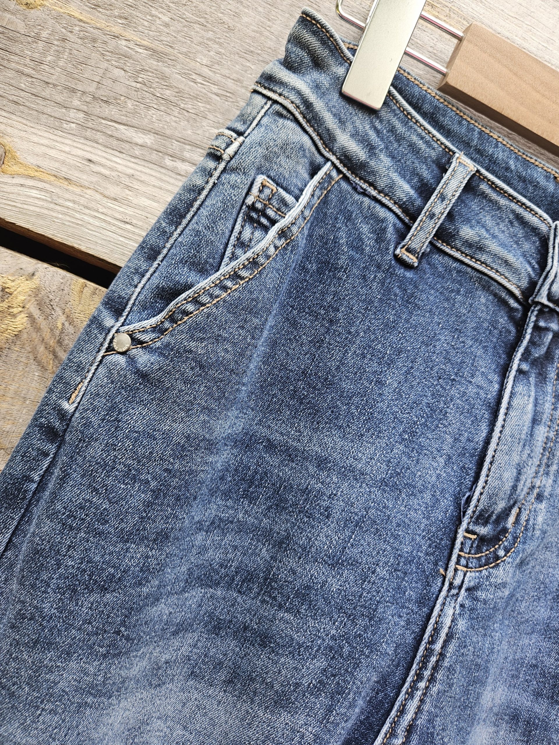 jean bleu légèrement délavé est un incontournable du dressing, alliant confort et style au quotidien. Sa coupe moderne met en valeur la silhouette tout en offrant une grande liberté de mouvement grâce à sa matière légèrement stretch.