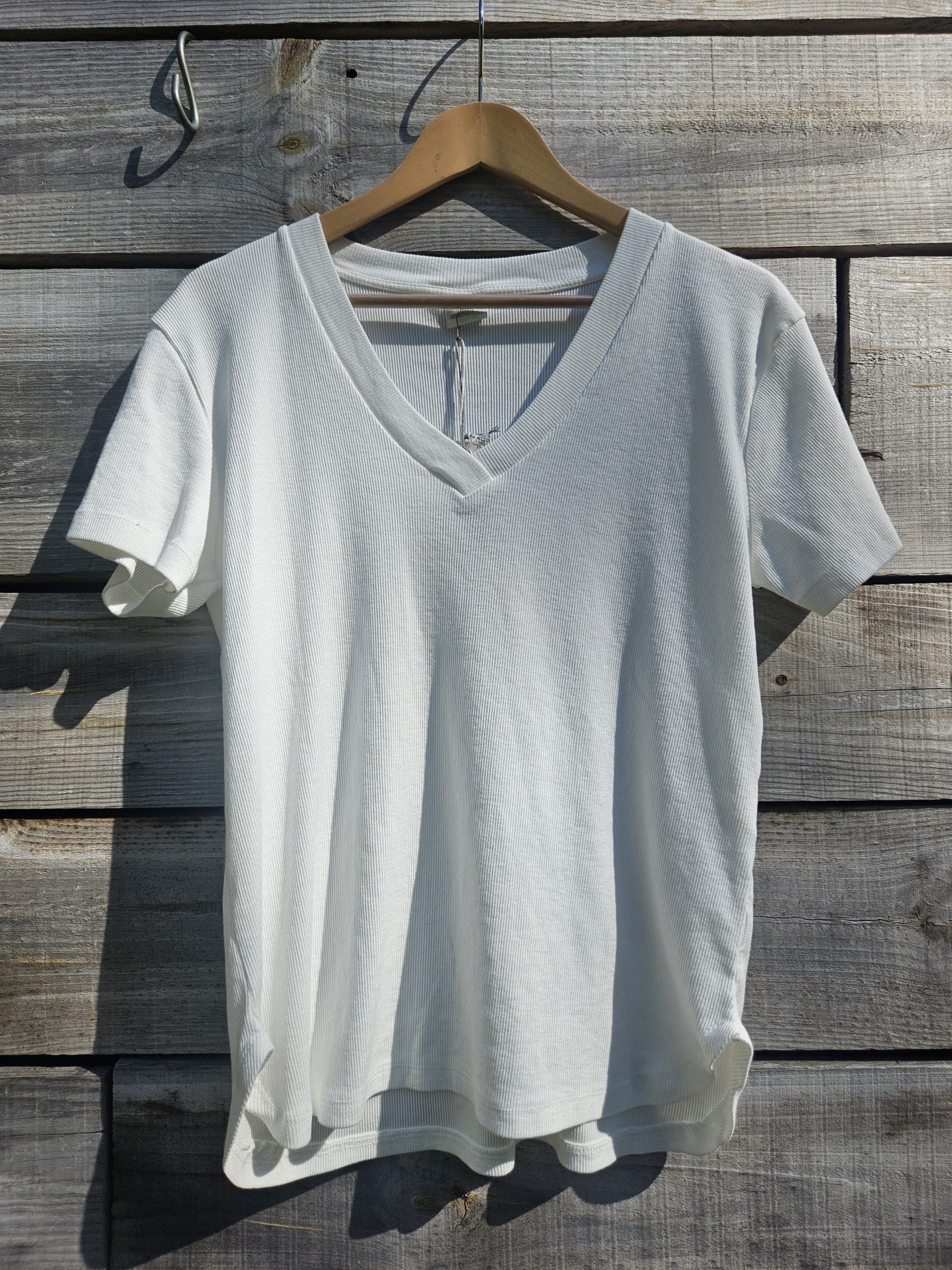 Description romancée pour mise en vente site internet T-shirt banditas coton côtelé col v matière souple et extensible